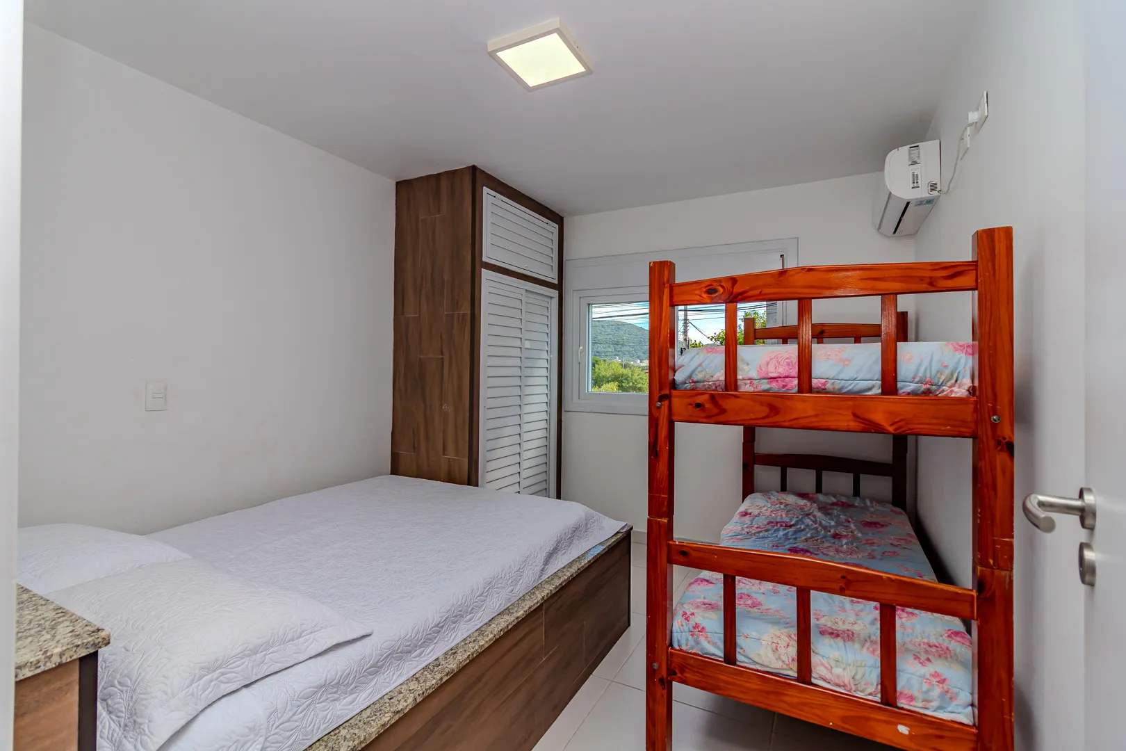 - 1 DORMITÓRIO COM 1 CAMA DE CASAL, 1 BELICHE E AR CONDICIONADO SPLIT,