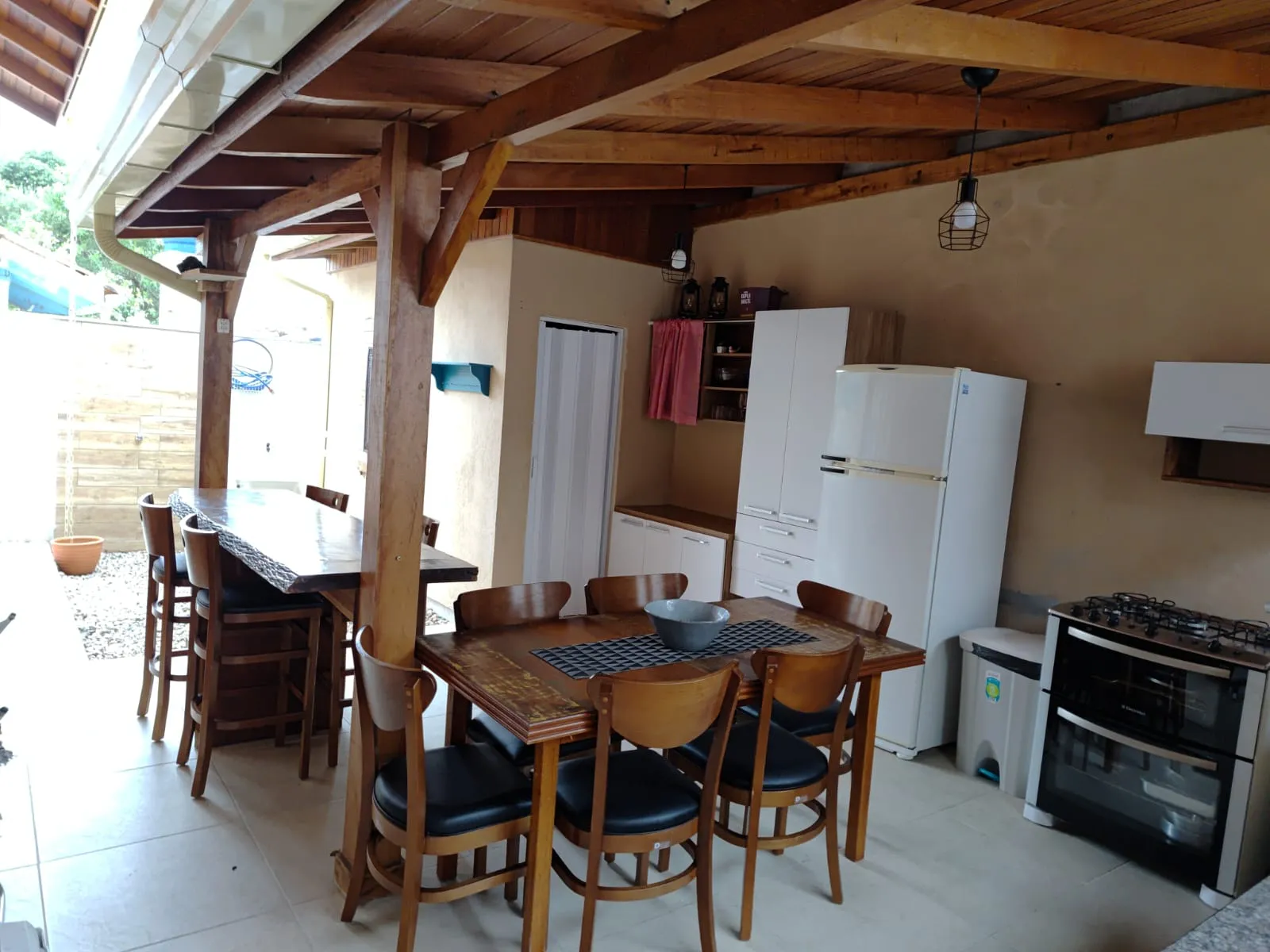 • Edícula mobiliada com churrasqueira a carvão, fogão a gás, geladeira, balcão, mesa e cadeiras — ideal para receber amigos e familiares